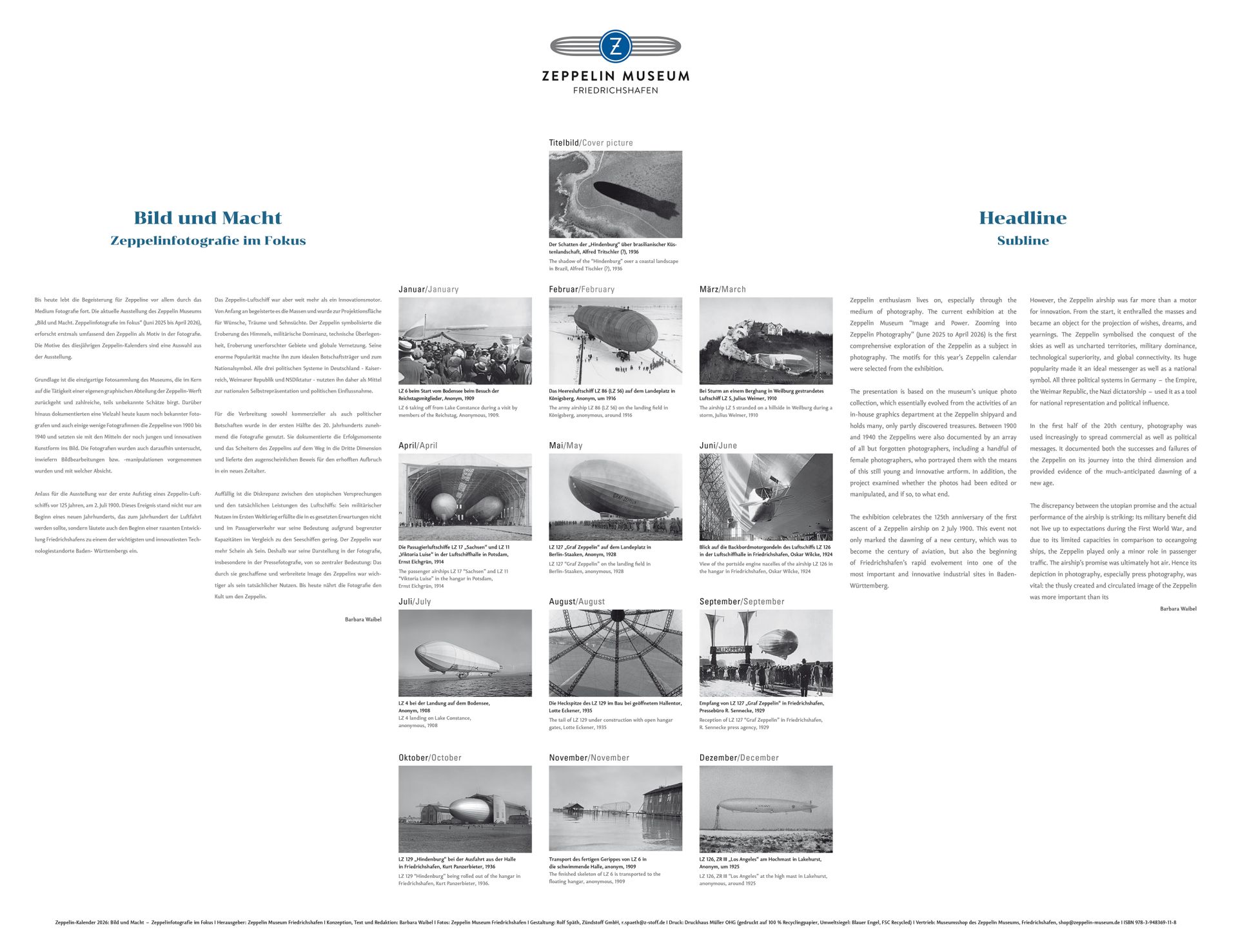 Grundlage ist die einzigartige Fotosammlung des Museums, die im Kern auf die Tätigkeit einer eigenen graphischen Abteilung der Zeppelin-Werft zurückgeht und zahlreiche, teils unbekannte Schätze birgt. Darüber hinaus dokumentierten eine Vielzahl heute kaum noch bekannter Fotografen und auch einige wenige Fotografinnen die Zeppeline von 1900 bis 1940 und setzten sie mit den Mitteln der noch jungen und innovativen Kunstform ins Bild.